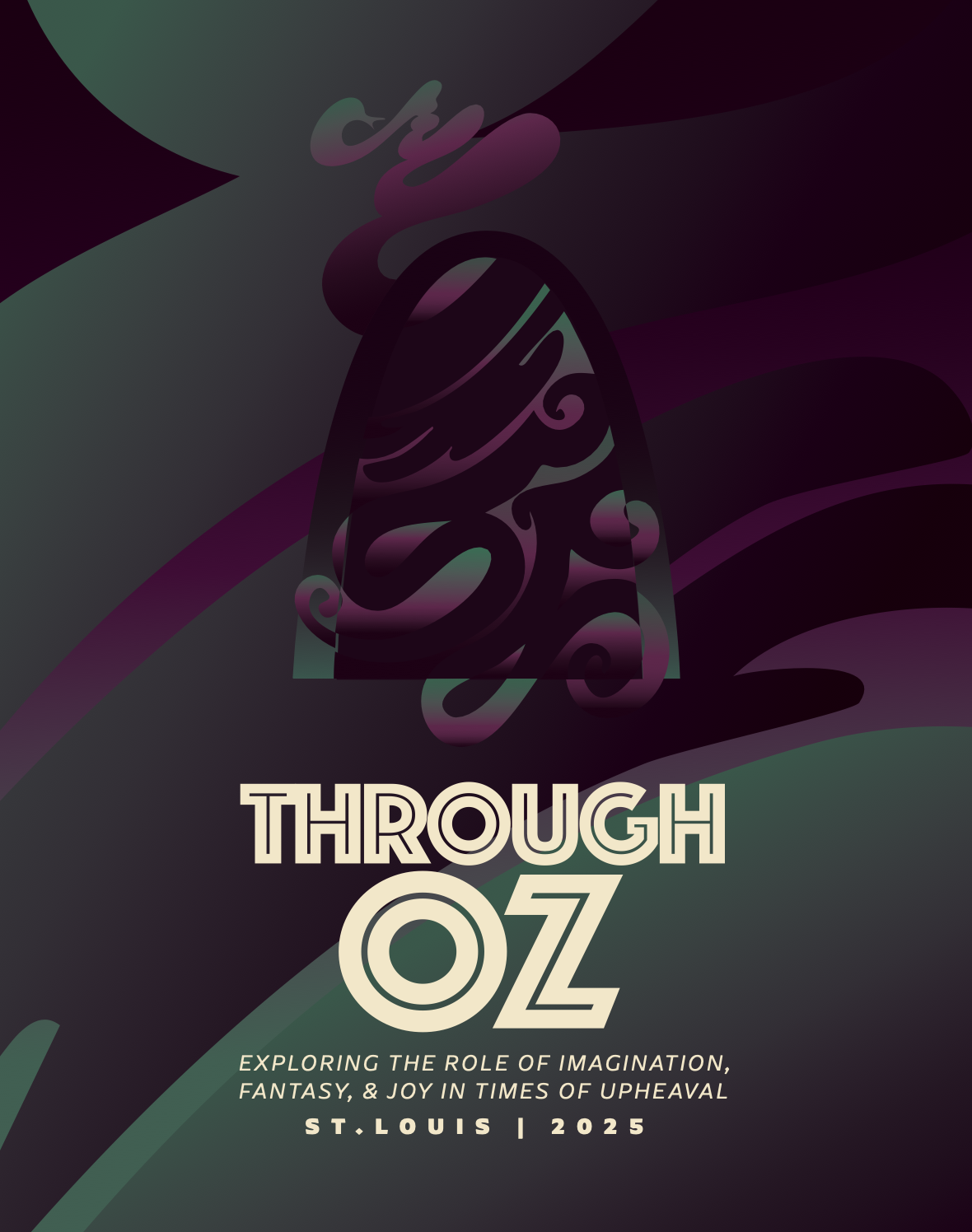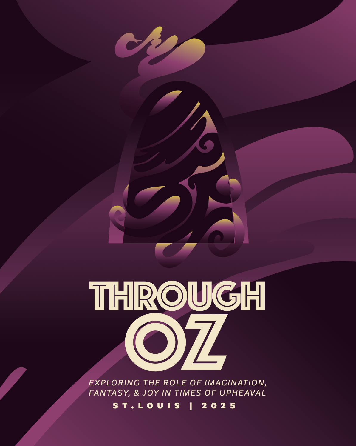 The Through Oz poster was created for an exhibition developed in response to The Wiz being staged at the The Fabulous Fox Theatre. The exhibition used the show as a starting point to explore imagination and joy during difficult times.